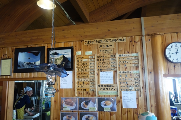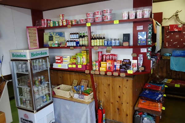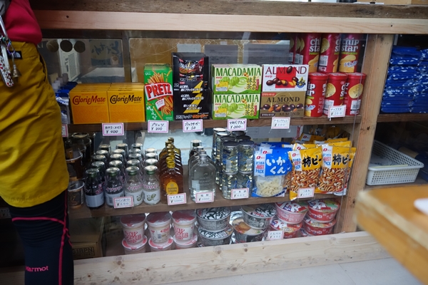 売店。 嫁さんが小屋番Tシャツに一目惚れで購入してました。なかなかこれませんから思い出作って頂きましょう(笑)。 |