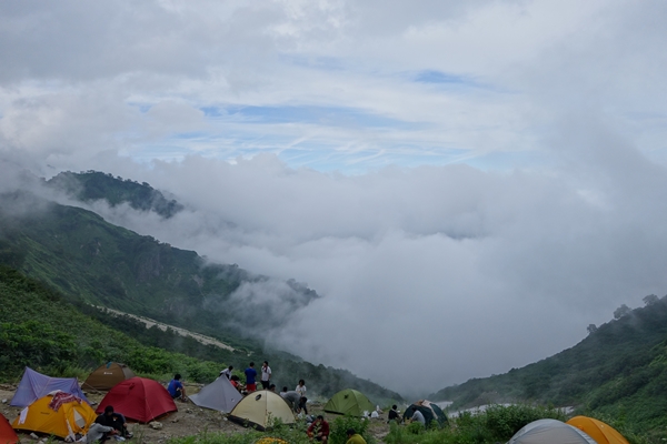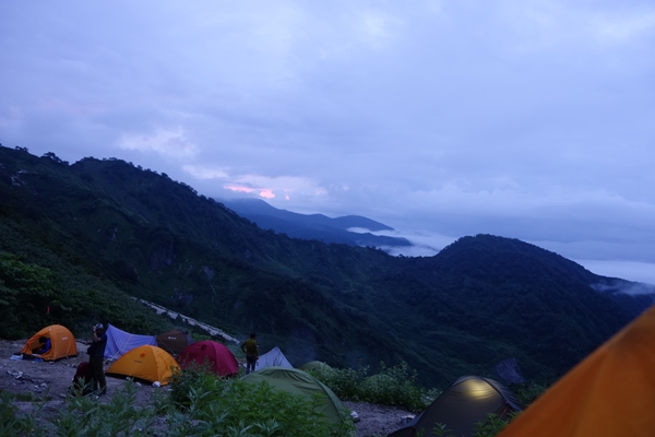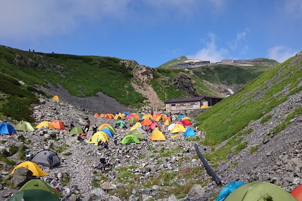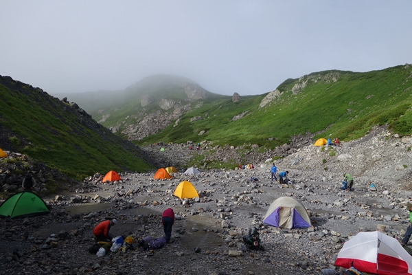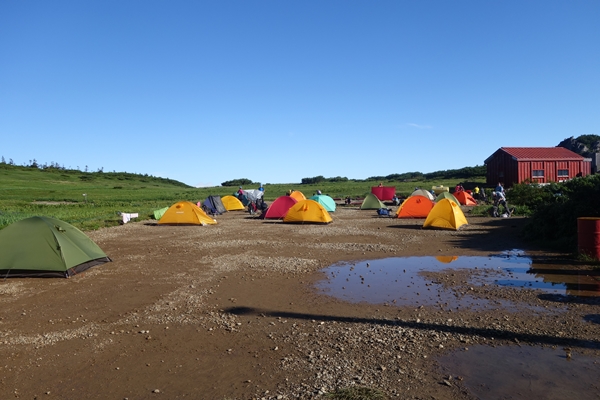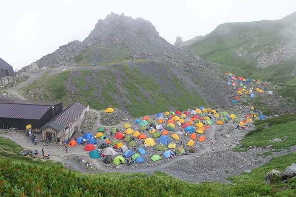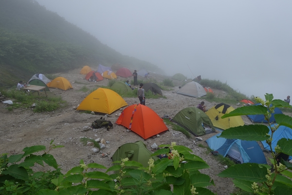 テント場は満員御礼でしたが、何とか張る場所を確保できました。 |