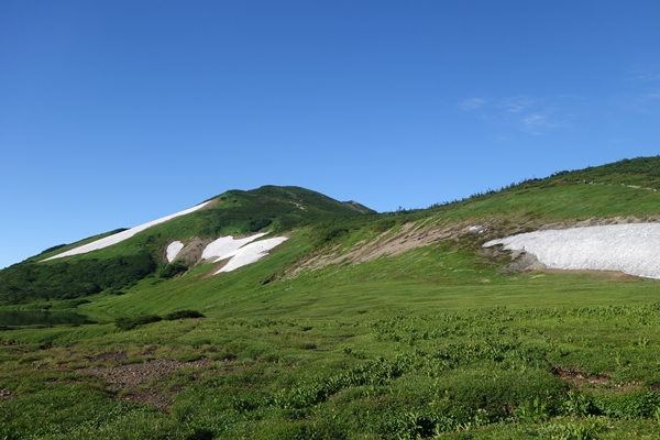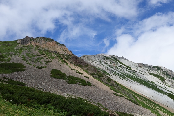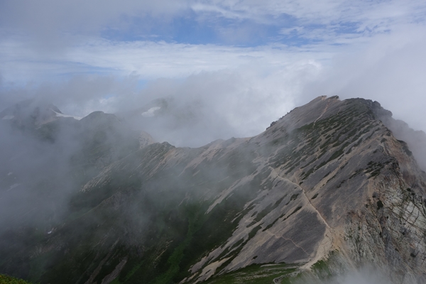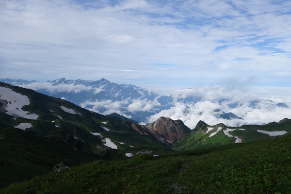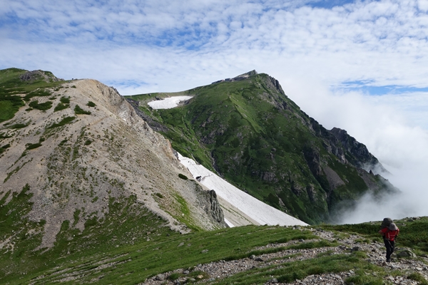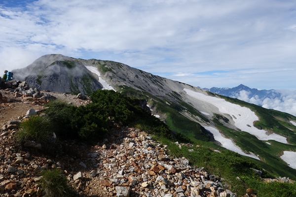 振り返ると白馬岳。 今日ばかりは出発が遅くても良かったかな。 |