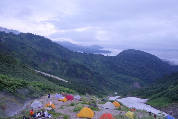 この日もほとんど最後発ですっかりテントが減ったキャンプ場。 皆起きないので早出が出来ません。。。 |