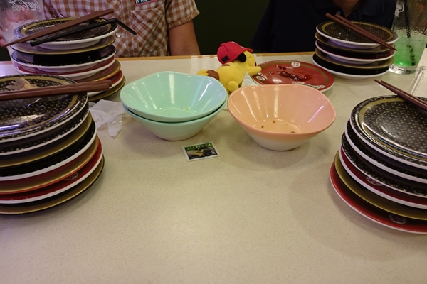 郡山に戻って家族希望の回転ずしへ。歩いたのに食べてばかりで太ります。 |