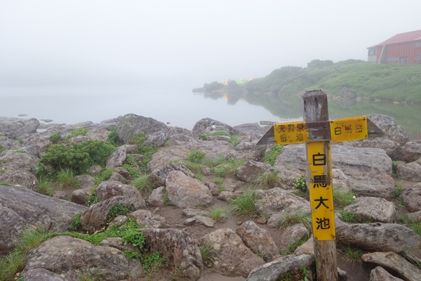 栂池自然園まで上がってきました。 明け方激しく降っていた雨は治まってくれました。 |