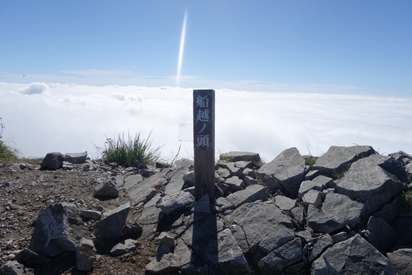 白馬乗鞍岳到着。 嫁さんと長男を待ってしばし大休憩。 山頂感のないところでした。 |