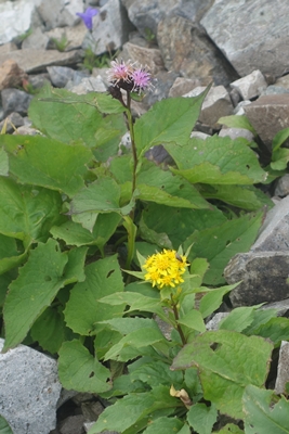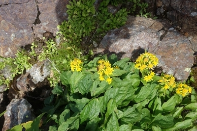 登山口に咲くヤマハハコ。 道中ずっと花が咲いている山でした。 ロープウェイの車掌さんが今年は雪が多かったので花が多いと言われてました。 |
