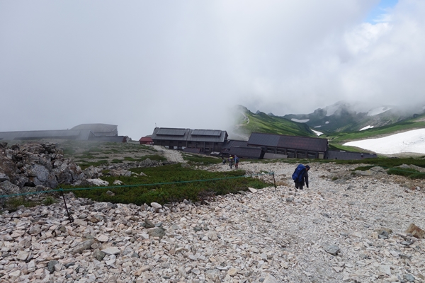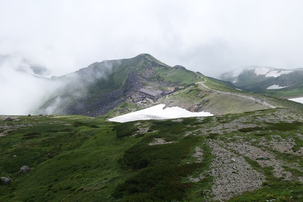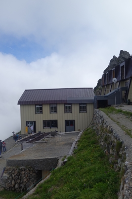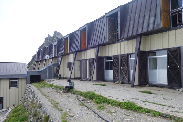 白馬岳頂上宿舎。 正面に見えるこちらの食堂も充実していて、18時までと食事の営業時間も長かったです。 |