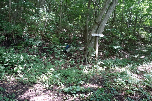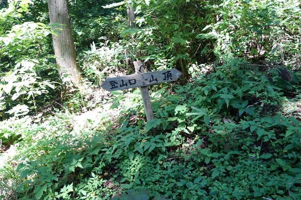 林道から再び登山道へ入る場所〜看板によく気付いたと自分を褒めました(笑)。 |