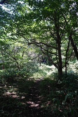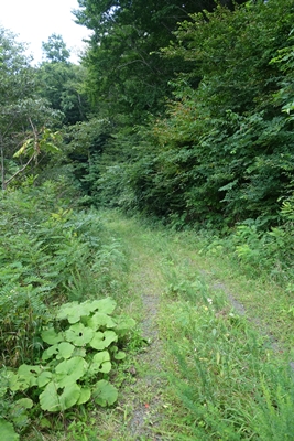 林道のような道に出ました。 草がだいぶ生えてますね。 |
