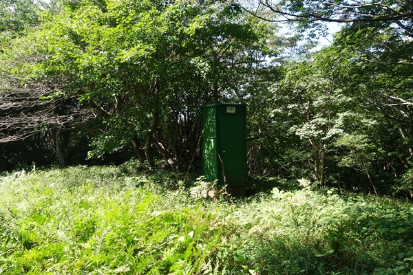山頂の広場にトイレがありました。 ちょっと怖くて中は覗いてません(笑)。 |