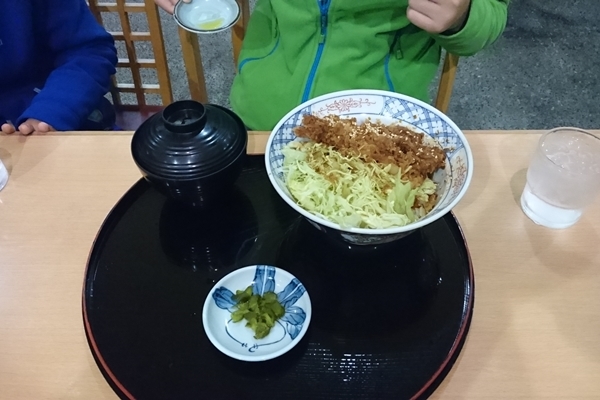 前日、寒河江PAで夕食。親はかつ丼、子供達はソースカツ丼でした。 |