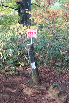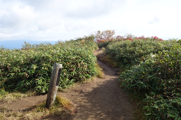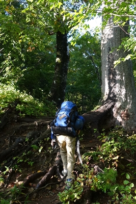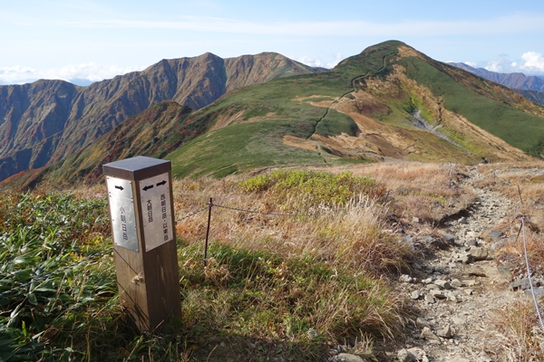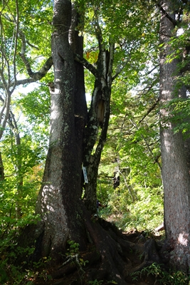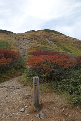巻き道への分岐。 嫁さんと次男は巻き道へ行くということで、長男と二人で小朝日岳を目指します。 |