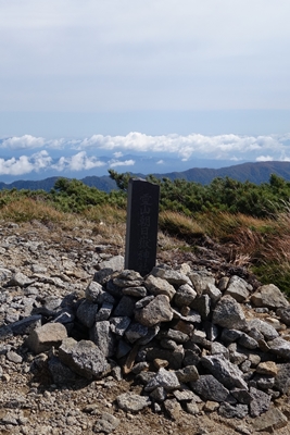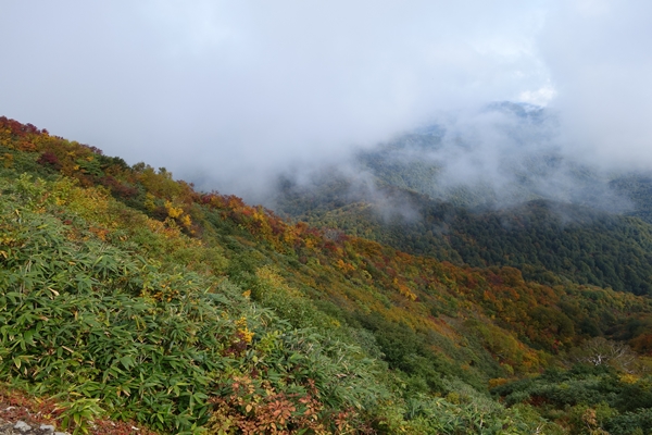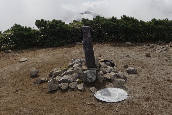 大朝日岳から西朝日岳方面。 大朝日岳はガスの中。 |