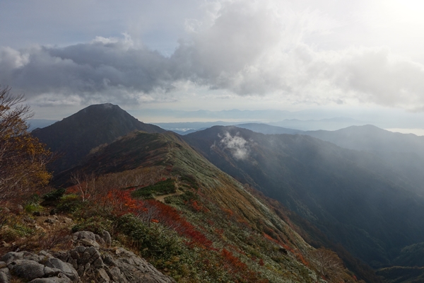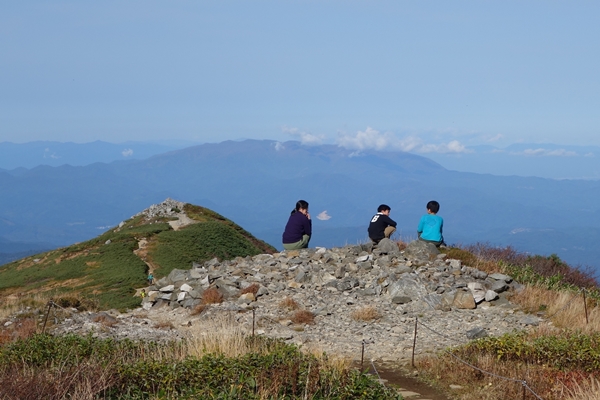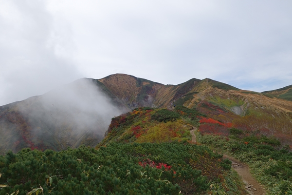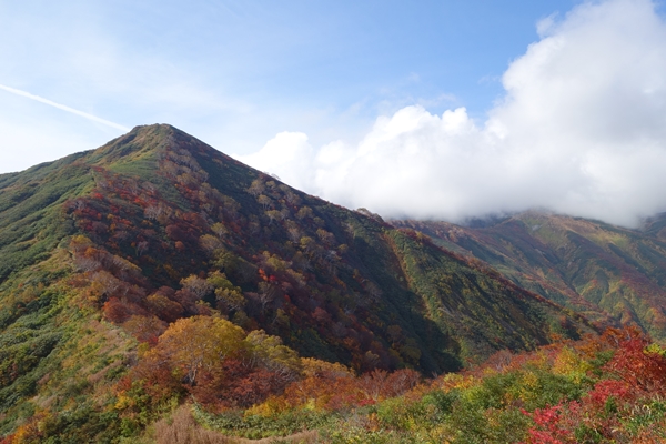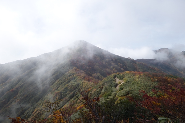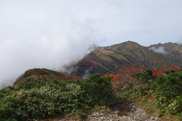 大朝日岳はまだガスがありますが・・・ |