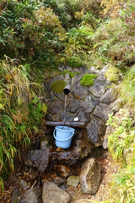 三沢清水、下山時は頂きました。 200mほど上から引いてきている水だと、水場にいた方に聞きました。 登山者のために引いてきてくれている水だったんですね。 |