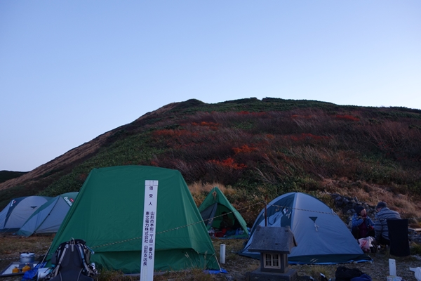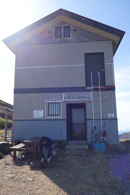 宿泊者が多くて、テントが小屋前に張られました。 テント泊禁止の小屋ですが、人数が多いときは小屋所有のテントが貸し出されるようです。 |