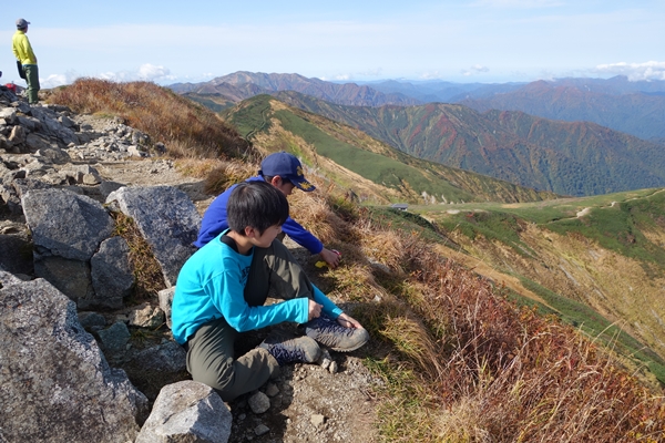 まだ景色を眺めているという嫁さんと長男を置いて、次男と一足先に下山します。 |