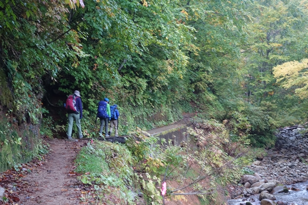 沢沿いの道を歩きます。 |