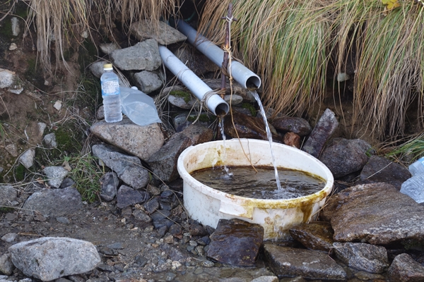 銀王水到着。 避難小屋泊に備えて給水。 |