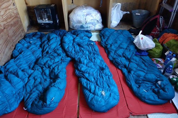 避難小屋は大盛況でした。 4人分の寝床は確保。 |