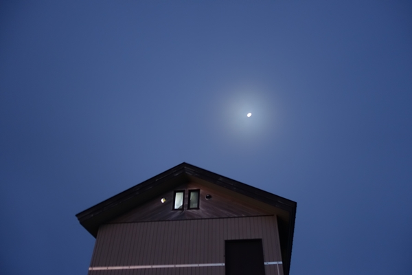 月が小屋の上に出てました。 |