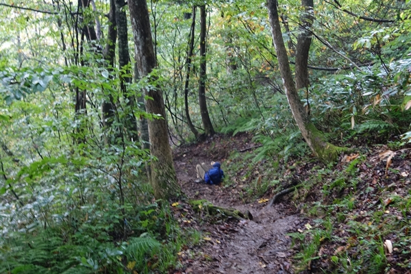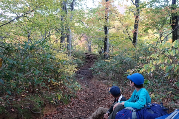 ハナヌキ峰の分岐で嫁さんを待つ子供たち。 下山は次男も快調。 |