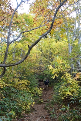 紅葉の中を歩きます。 |