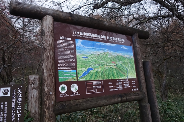 山頂の看板に蓼科神社奥宮があったので奥に歩いてみたのですが・・・ |