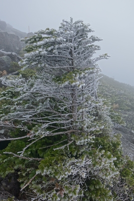 霧氷がついてきれいでした。 山頂ヒュッテの横でオコジョに会えました。 |