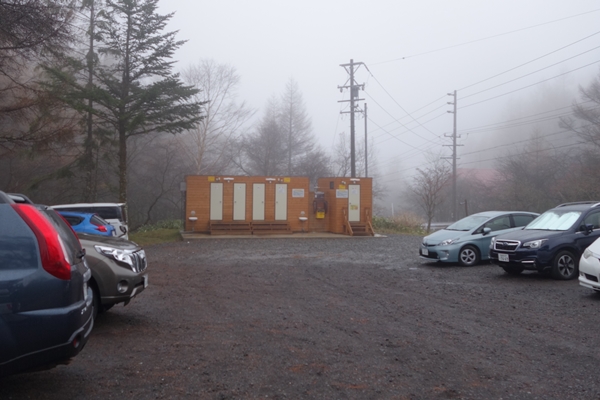 登山口・・無料駐車場は1/3ほど埋まっていました。 立派な公衆トイレもあり登山者に優しい。 |