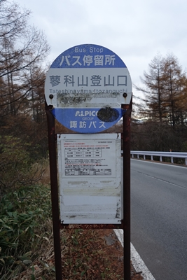 バス停。運行4/29〜10/29とあるので今年は終了でしょうか? |