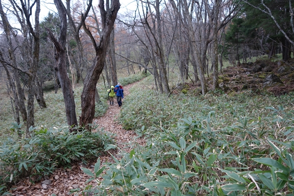 すっかり風もなくなり快調でしたが、この後に雨が降ってきてしまいました。 無精してジャケットとザックカバーだけで歩いたら、笹原のところでビショビショになり、かなり冷たかったです。 レインコート、重要でした。 |