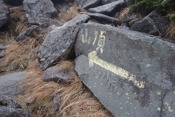 どこ見ても岩で景色が大差ないので、ペンキの矢印を頼りに進みます。 風が強くて寒かったです。 |