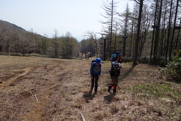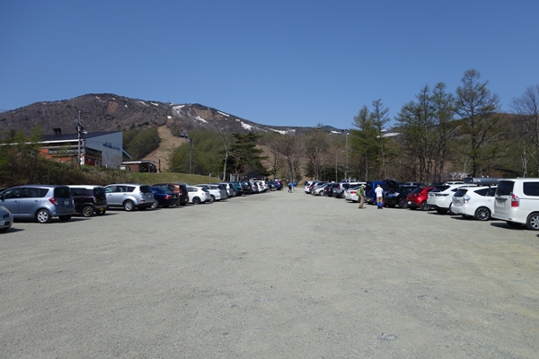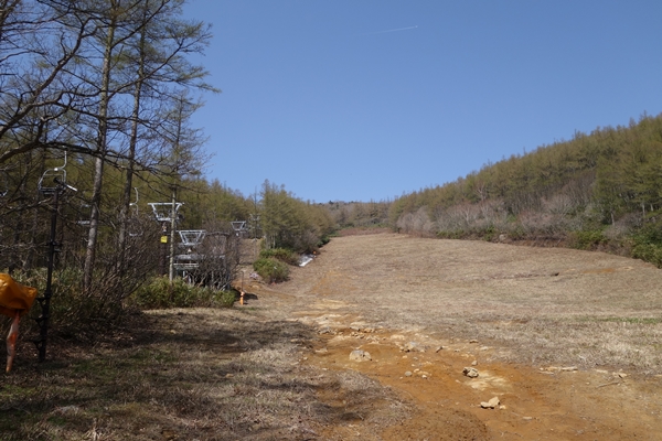 ゲレンデの雪はすっかり溶けていました。 1か月前に来たときはまだスキー場のリフトが動いていたんですが、すっかり様変わり。 |