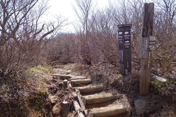 勢至平の分岐まで下ってようやく雪解け水の川から解放されました。 |