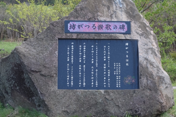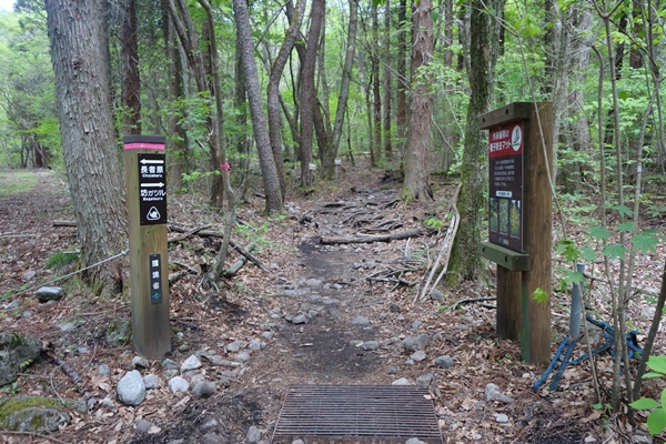 登山道はここで終わり、ここからは車道を歩いて戻ります。 |