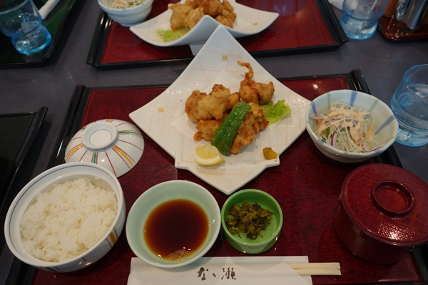 大分空港へ移動してお昼ご飯。 大分名物のとり天定食です。 |