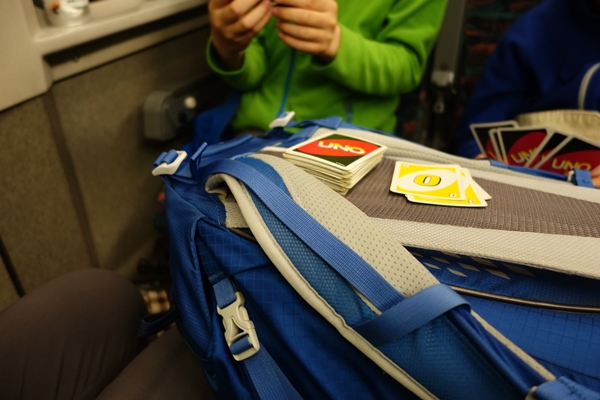 帰りの新幹線もUNO大会、ユンのアシストばかりして不調でした。。。 |