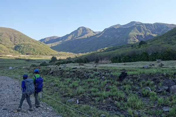 遅い出発ですが、いい天気。 どこが久住山だろう? |