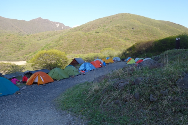 坊がつるキャンプ場。 遠くから見るだけでしたが、多くのテントが張られていました。 |