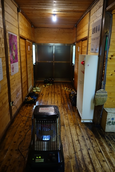 小屋の廊下・・夜はストーブがついていて暖かかったです。 |
