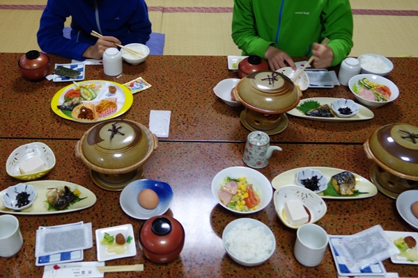 朝食。もう歩きませんが、しっかり食べます(笑)。 |