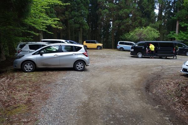 北谷登山口から2つ下の駐車スペースに駐車。 ここも7時の時点でほぼ満車、なかなか人気の山です。 |