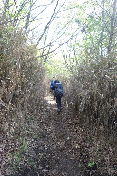 歩きやすい道です。 昨日と違って風からも守られていて、嫁さんも快調なペース。 |