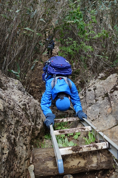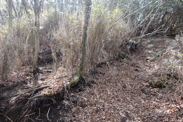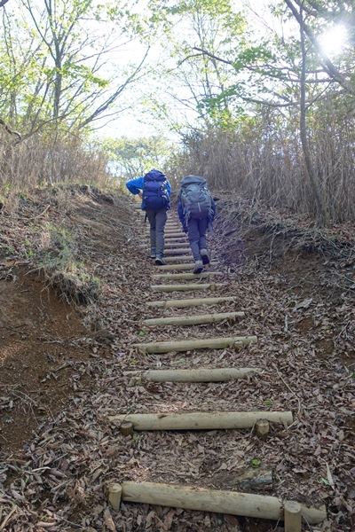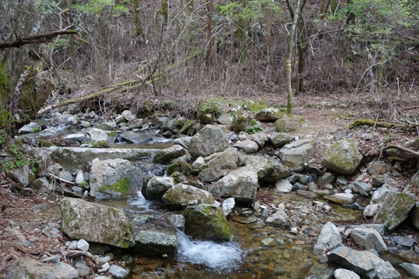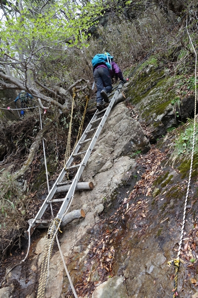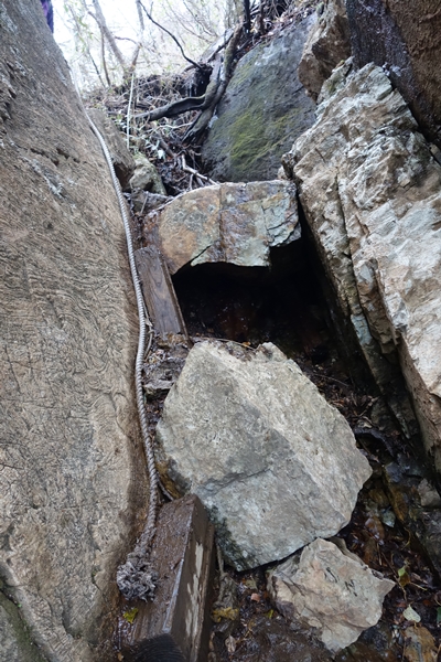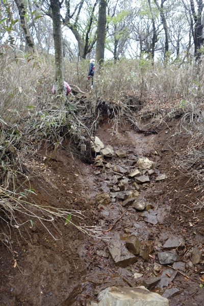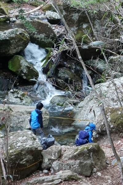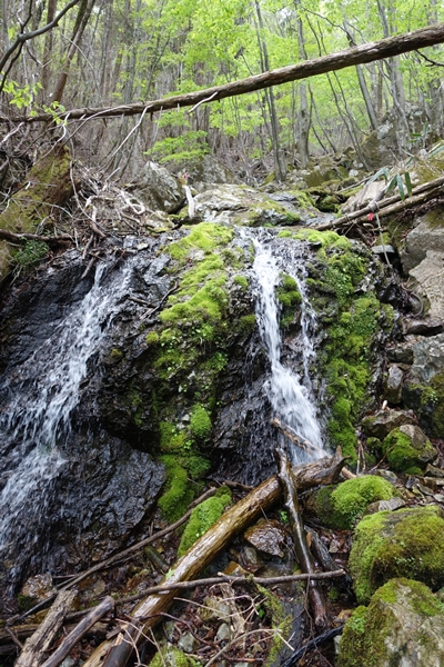 小さな滝の横も下ります。 いろいろ変化に富んだ登山道ですね。 |