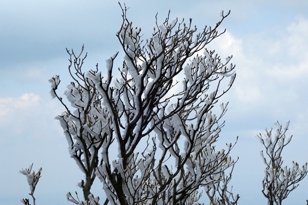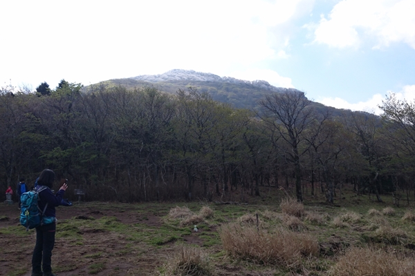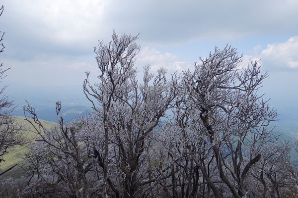 山頂付近が白い・・・まさか霧氷が見れるとは思いませんでした |
