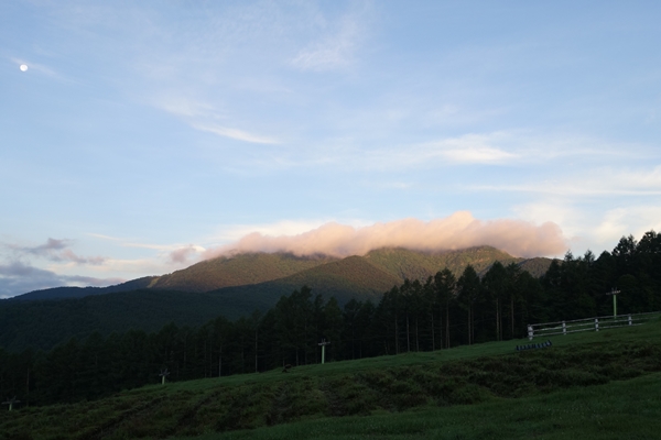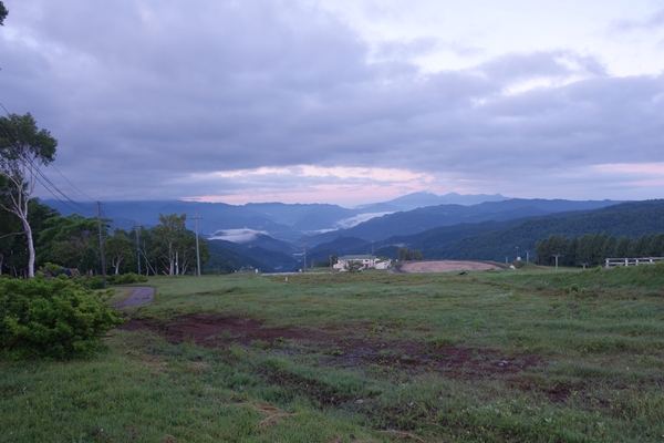 4時過ぎに起床。奥に見えるのは赤城山と思われる。 |