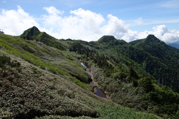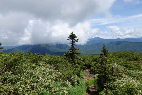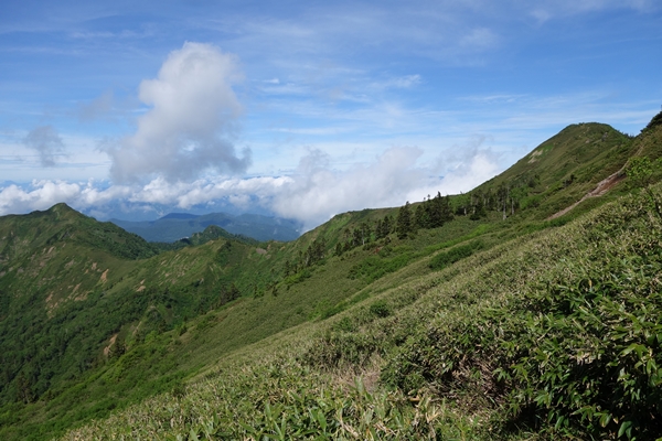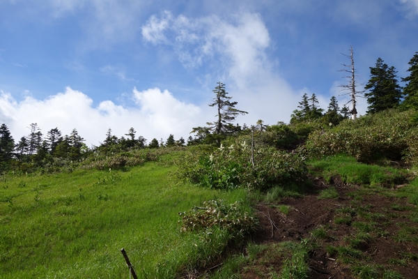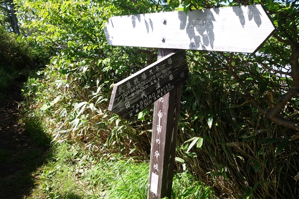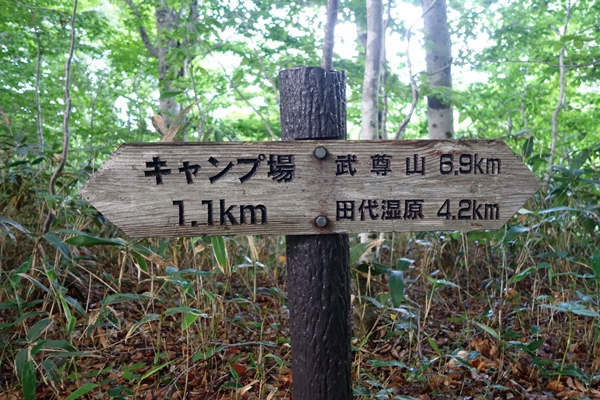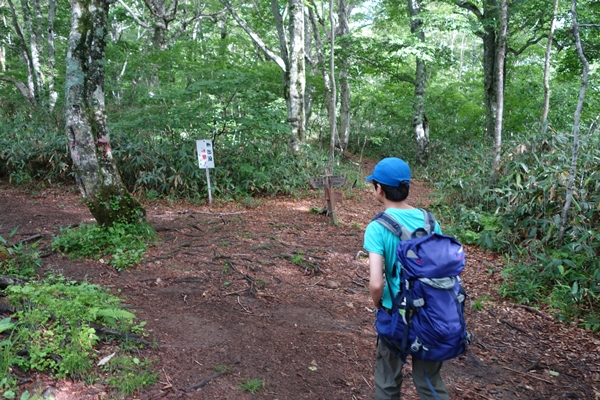 川場野営場からの登山口との合流地点。 そちらから登ってこられたおばさま、クマの鳴き声を聞いたとのこと。 1人で遭遇したら足すくんで動けなくなりそう。。 |