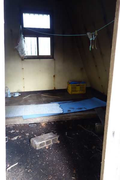 避難小屋。 扉が開きっぱなしと思ったら、建付けが悪くて閉めることができませんでした。 |