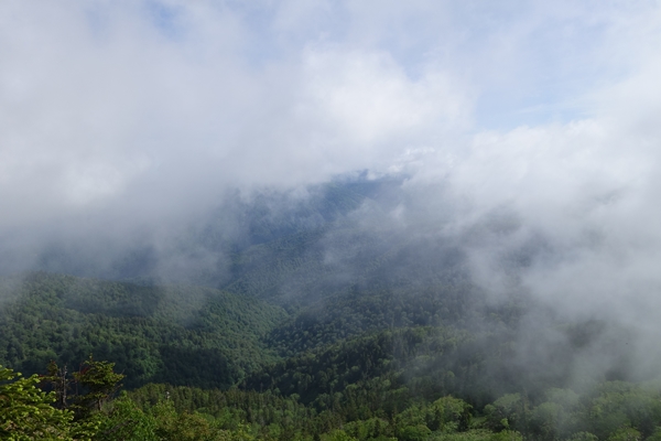 尾瀬の山見納め。 至仏山は最後まで雲の中でした。 |