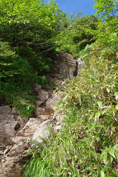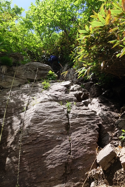 登山道らしくなってきたなと思っていたら鎖場も現れました。 ここは3段目くらい。 |