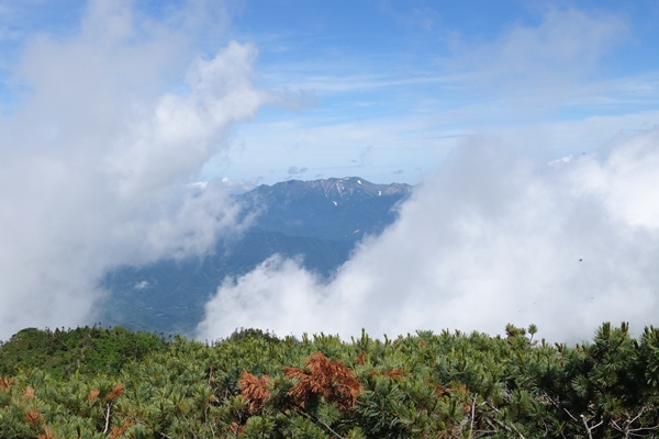 段々雲が晴れてきて、日光連山方面が見えてきました。 一番高い日光白根山も雲の合間から見えました。 |